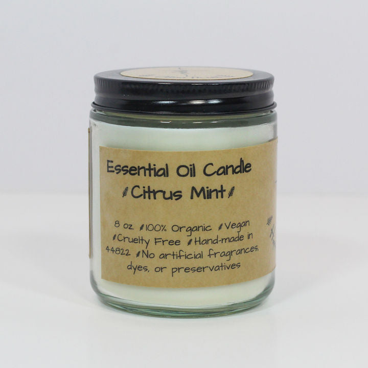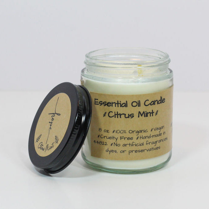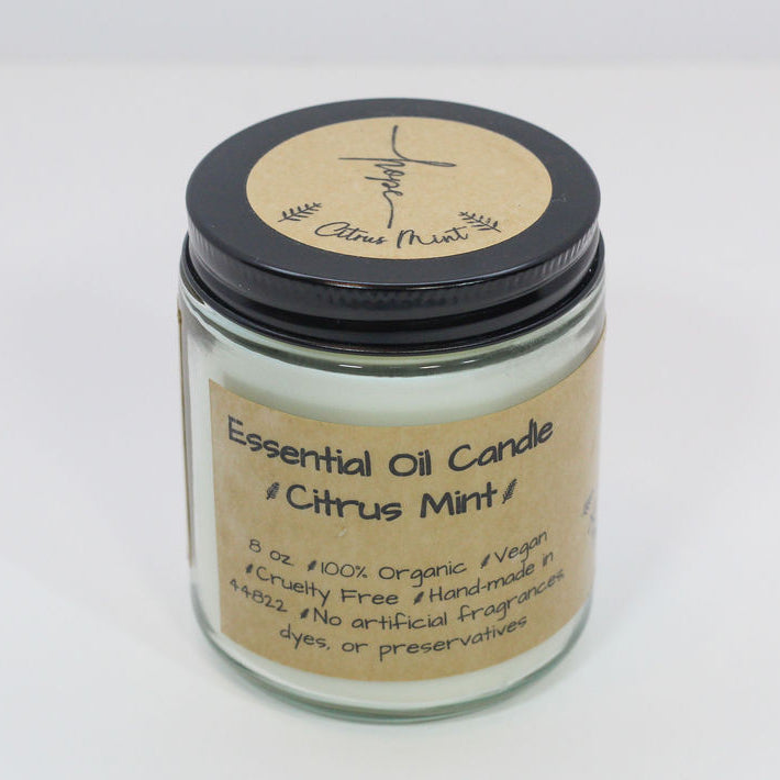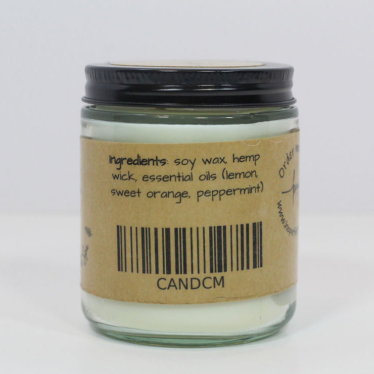 Our Citrus Mint Soy Candle is a refreshing blend of Lemon, Sweet Orange, and Peppermint Essential Oils.