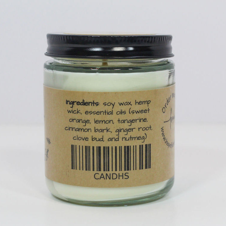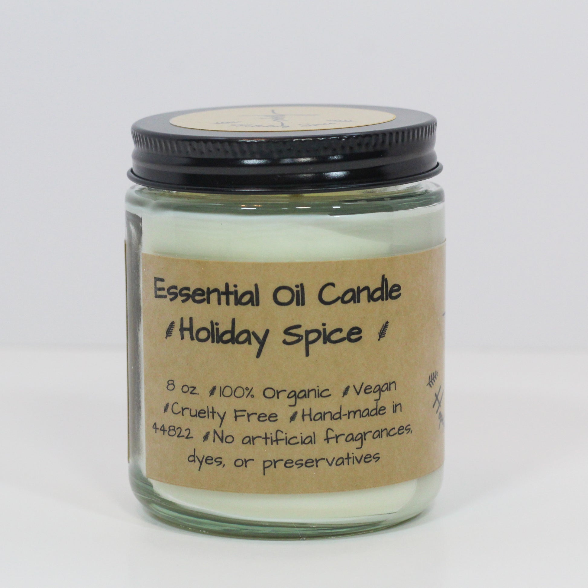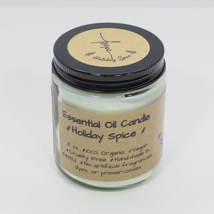 Our Holiday Spice Soy Candle is a warm, spicy, citrusy blend of Sweet Orange, Lemon, Tangerine, Cinnamon Bark, Ginger Root, Clove Bud, and Nutmeg Essential Oils.