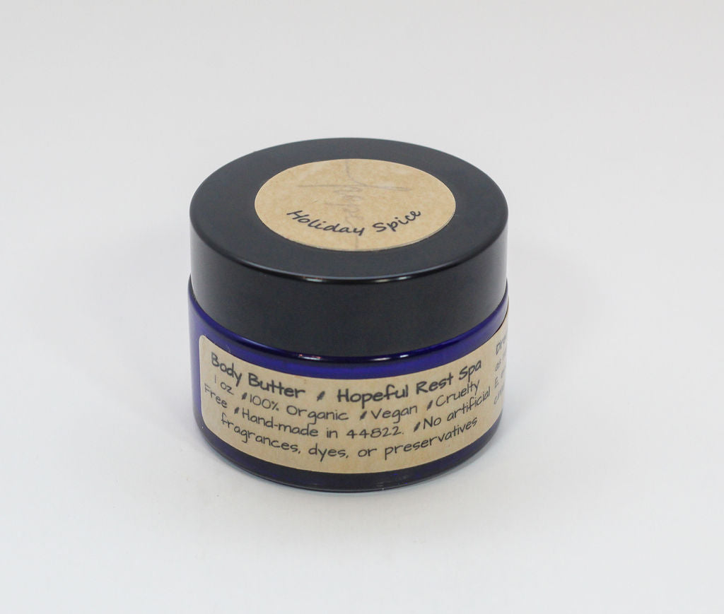 All of our products are hand made with natural, organic ingredients and essential oils. There are no artificial fragrances or dyes. Our products come in glass jars to maintain the integrity of the essential oils.
