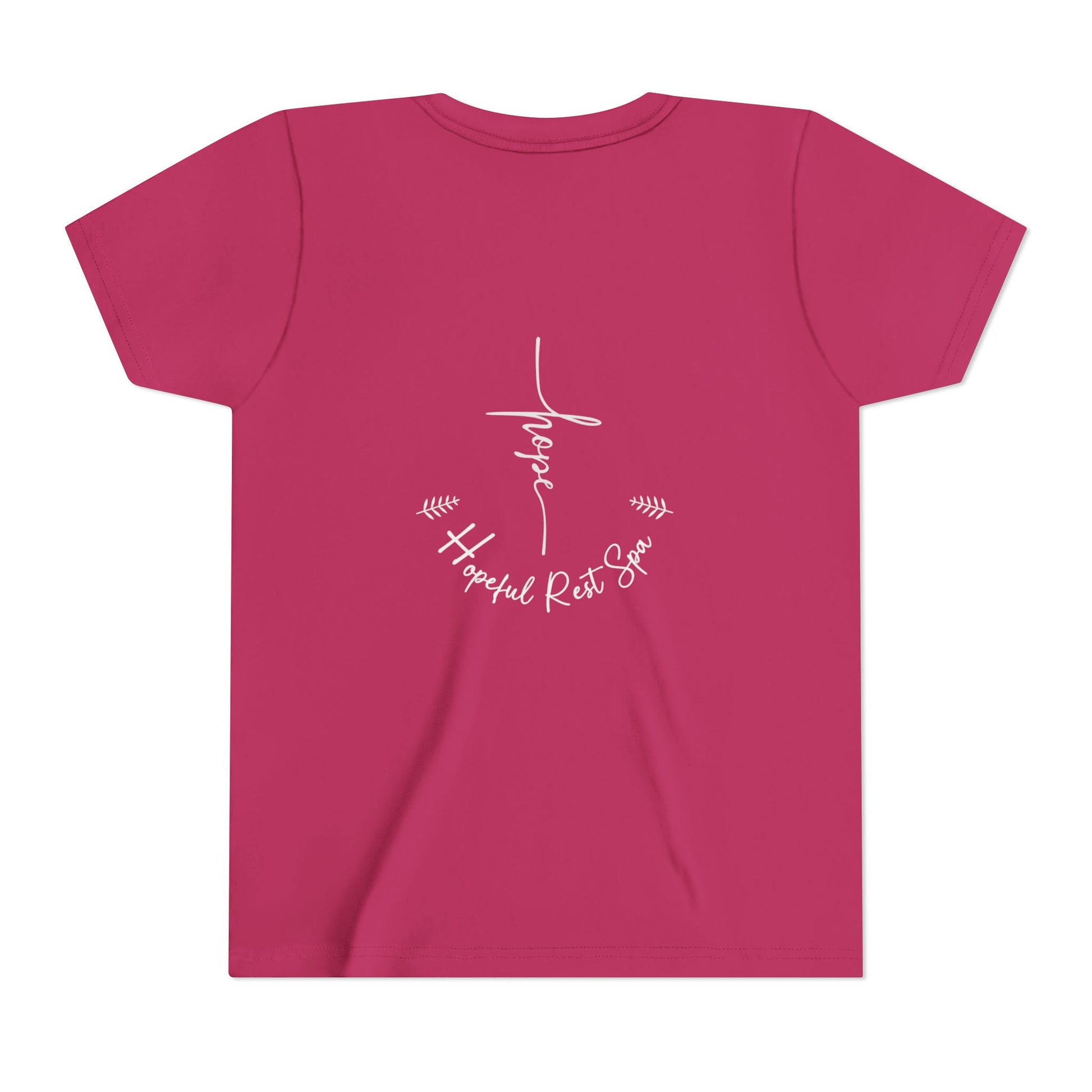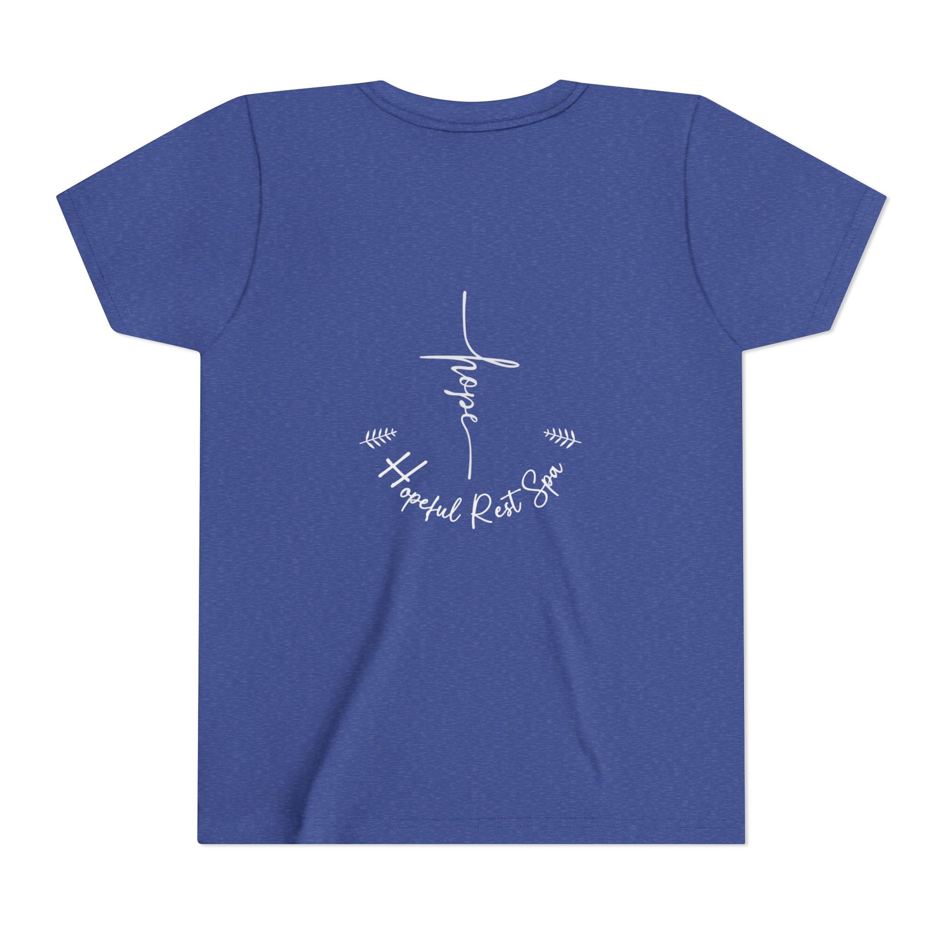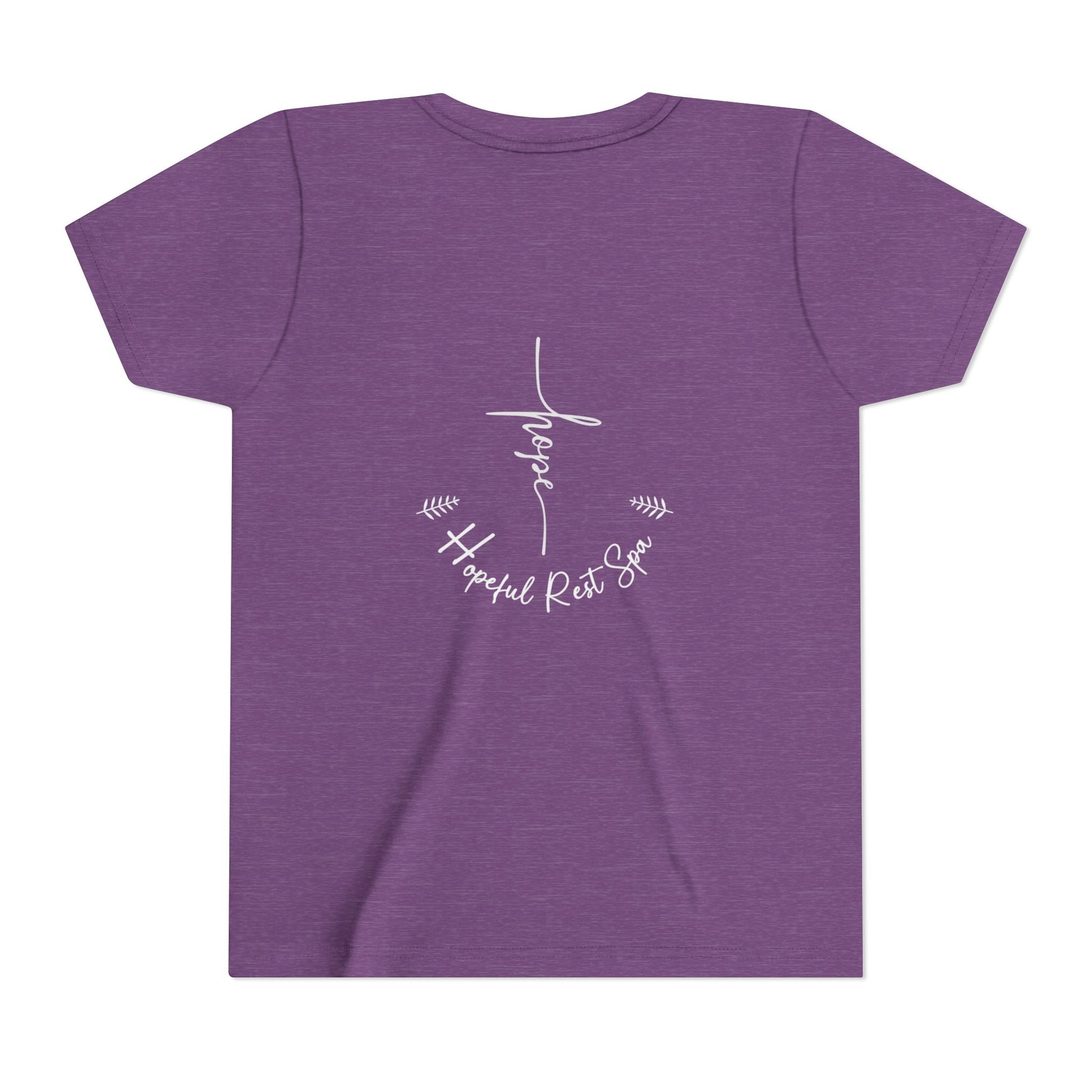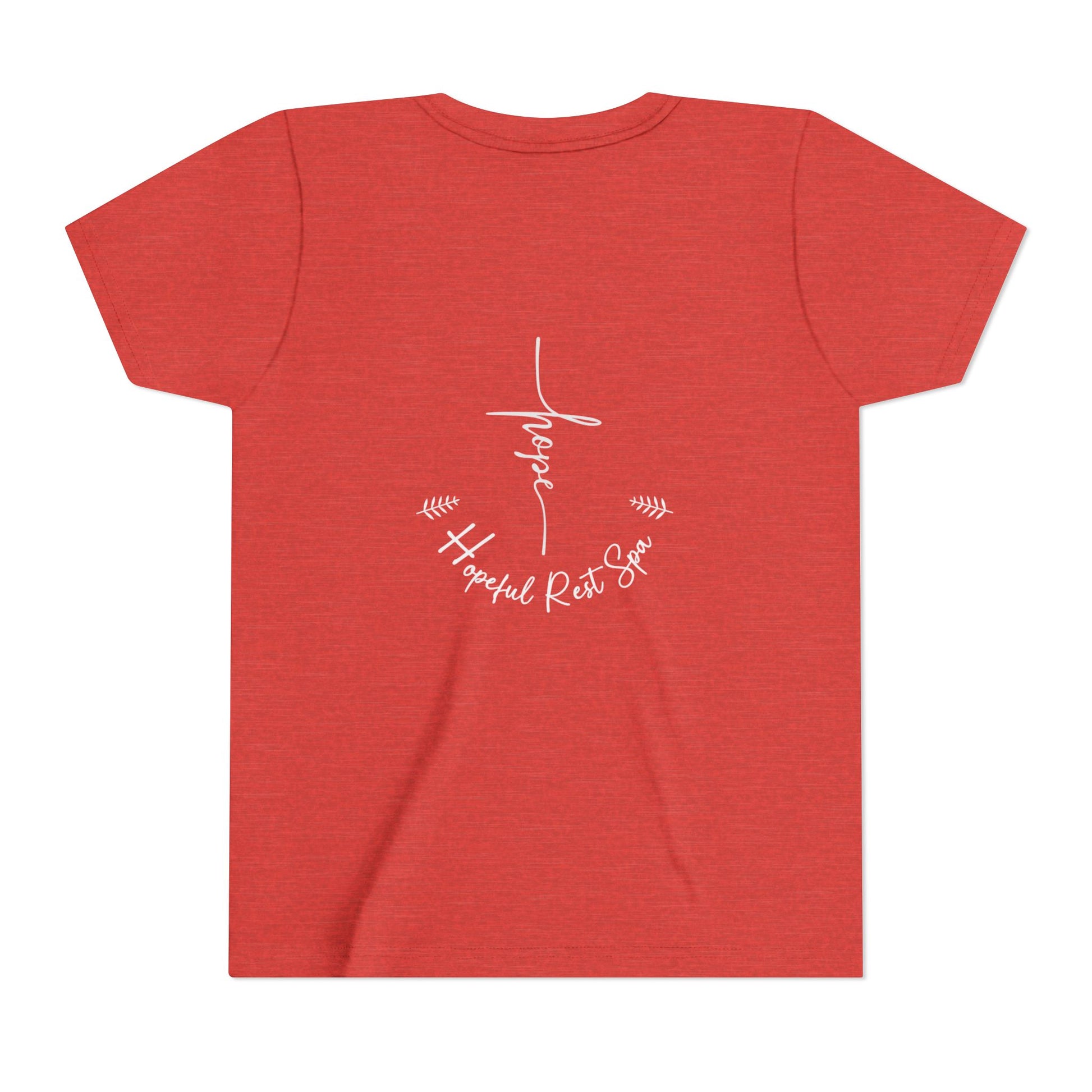 Soft and durable kids shirt (Bella+Canvas) with our Hope design on the front. Back of shirt has our Hopeful Rest Spa logo. This shirt is a great option for showing your faith. Perfect for young believers looking for a comfortable and stylish way to express their religious beliefs. Relevant for Easter, Christmas, Sunday school, and everyday wear.